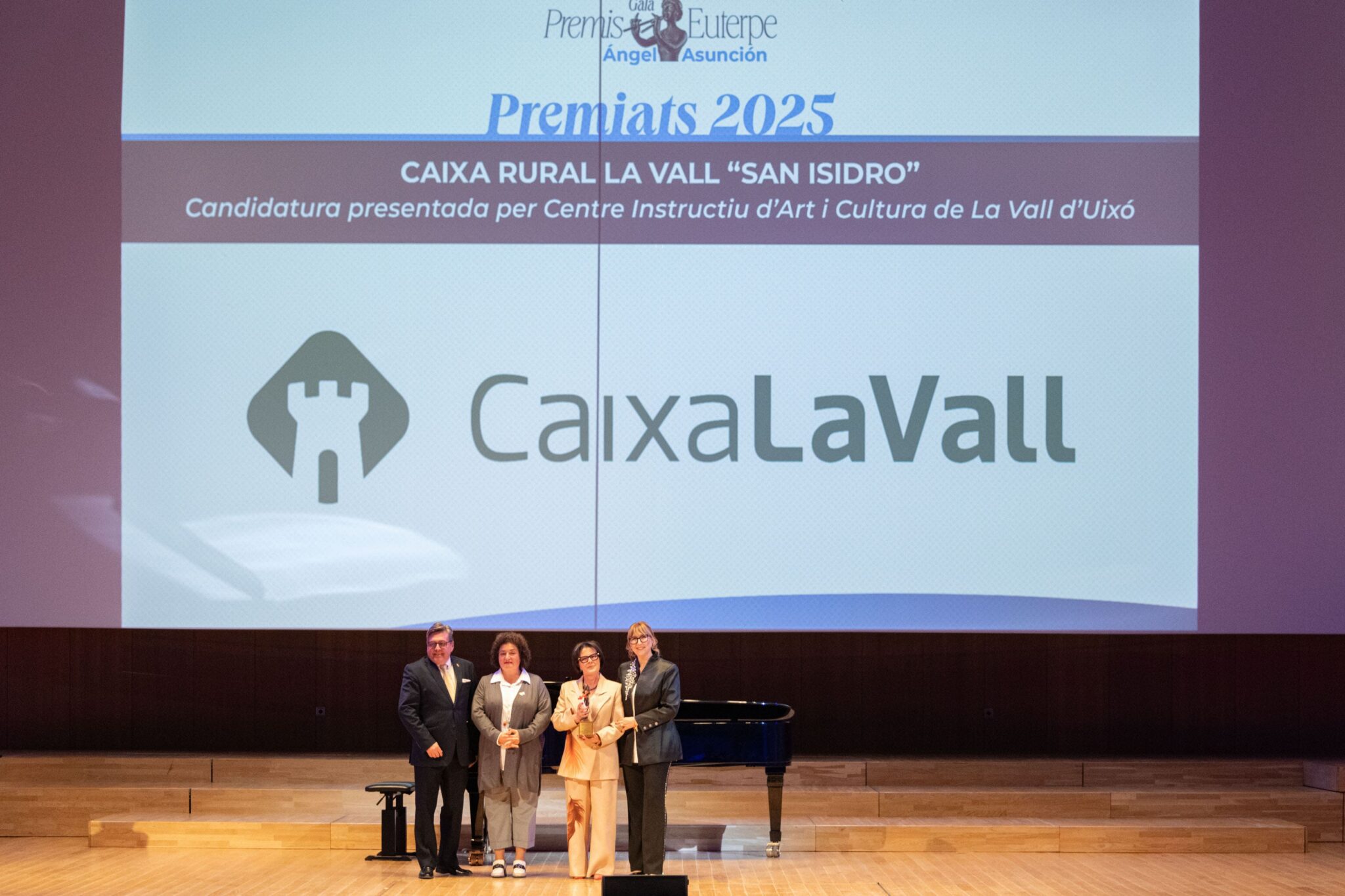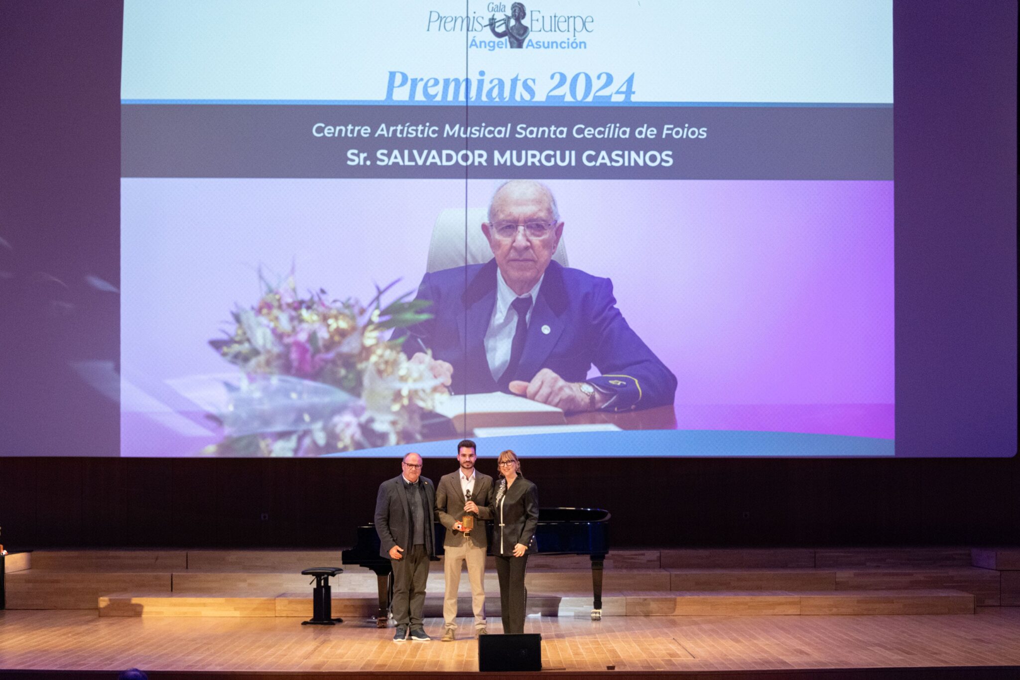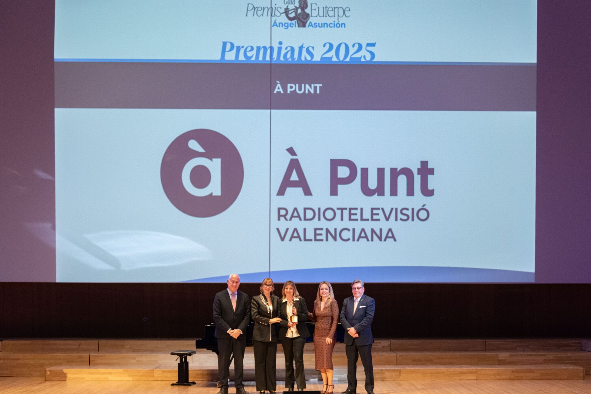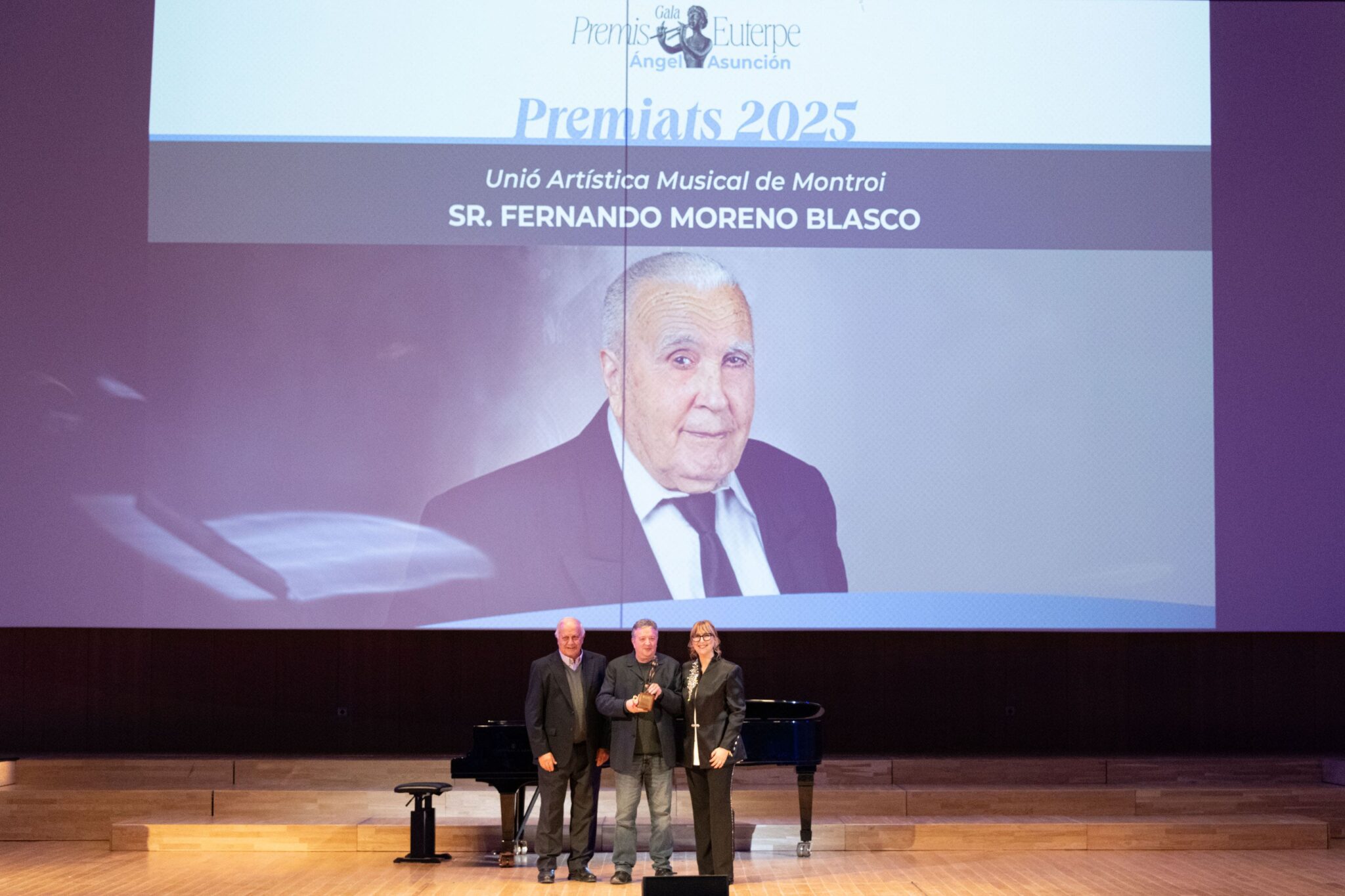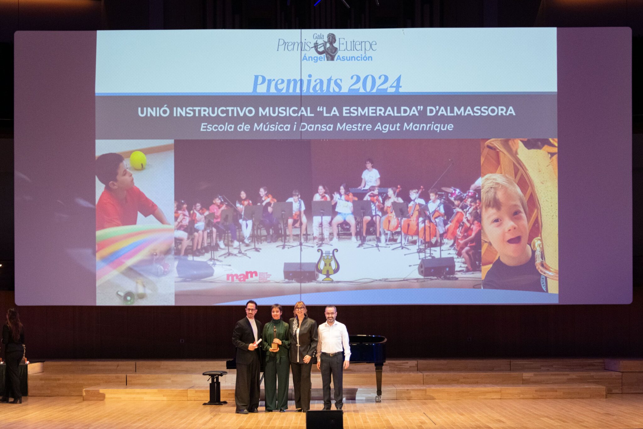 La Federación de Sociedades Musicales de la Comunidad Valenciana (FSMCV) celebró el pasado miércoles 26 de noviembre la gala de los Premios Euterpe – Ángel Asunción, que por primera vez tuvo lugar en el emblemático espacio del Palau de la Música de València. Esta edición tenía un valor especialmente simbólico: tras la suspensión de la gala prevista en 2024 debido a la DANA, la ceremonia ha reunido los premios correspondientes a 2024 y 2025, coincidiendo con la recuperación del XXV aniversario de los galardones.