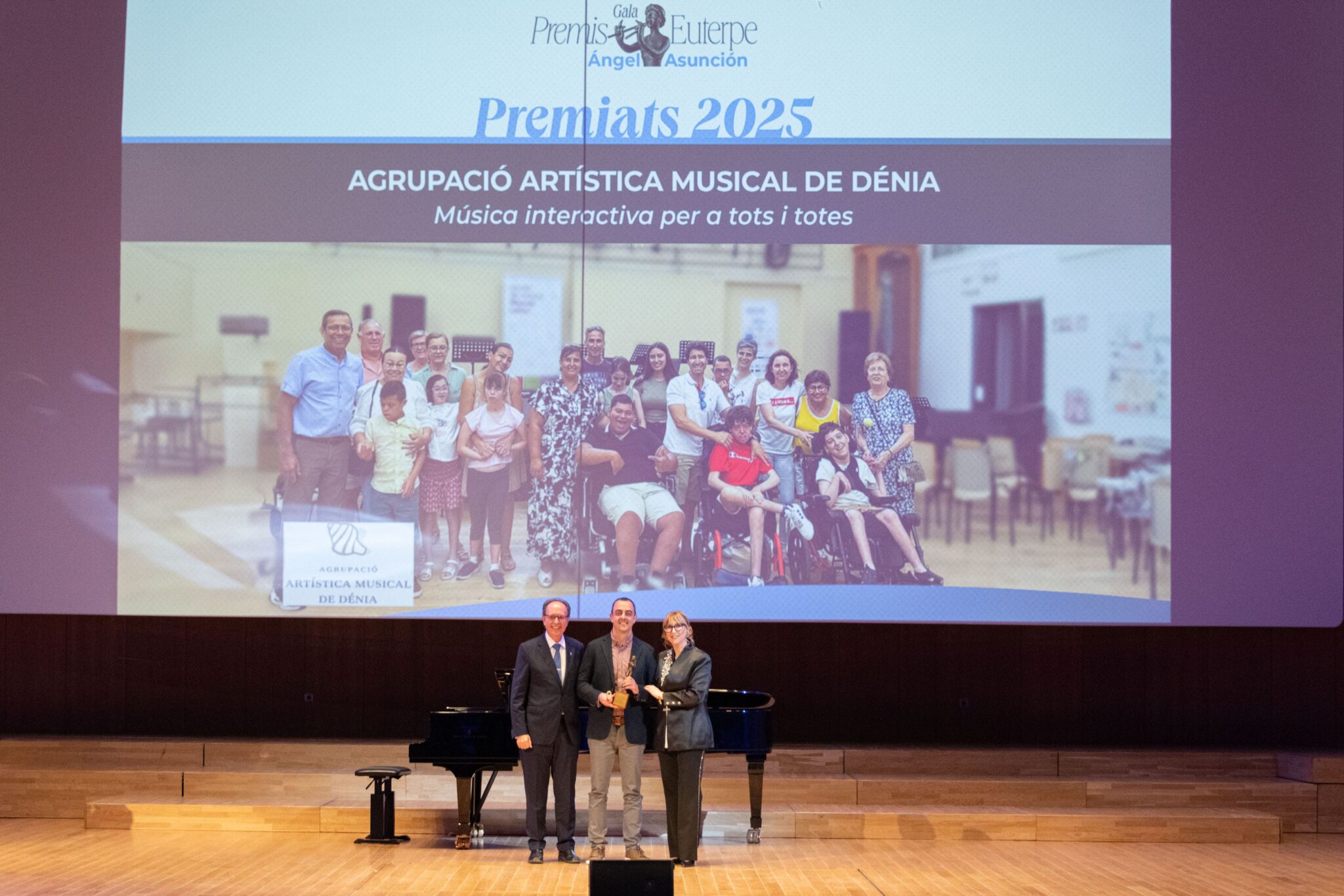 En la categoría de inclusión social se concedió el Premio Euterpe – Ángel Asunción de 2025 al proyecto Música Interactiva per a Tots i Totes, de la Agrupació Artística Musical de Dénia; un galardón que en 2024 había sido otorgado a la Unión Instructivo Musical La Esmeralda de Almassora.
