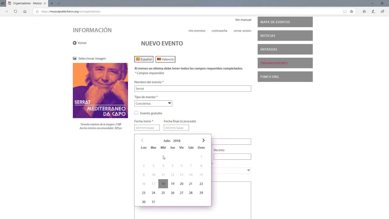 La seua utilització és molt senzilla. Simplement has de sol·licitar l’alta de la teua Societat Musical en la plataforma des de l’apartat d’ “Organitzadors” i una vegada validat ja podràs començar a publicar les activitats de la teua Societat Musical.